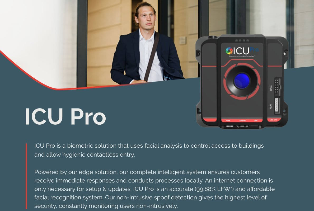 ICU Pro - bietet eine biometrische Lösung für die Zugangskontrolle in Gebäuden. Diese berührungslose Technologie gewährleistet ein