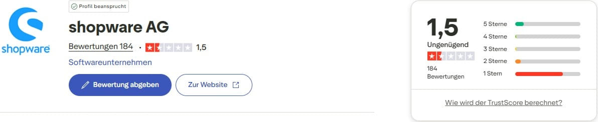 Hier https://de.trustpilot.com/review/shopware.com?sort=recency eine vernichtende Bewertung auf Trustpilot über Shopware, die auch ich unterschreiben kann.