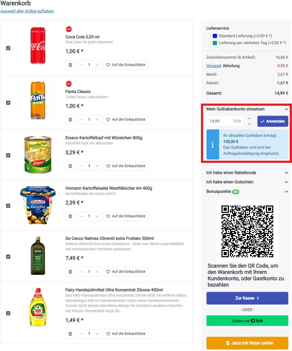 - Das Guthaben wird im Kundenkonto angezeigt.