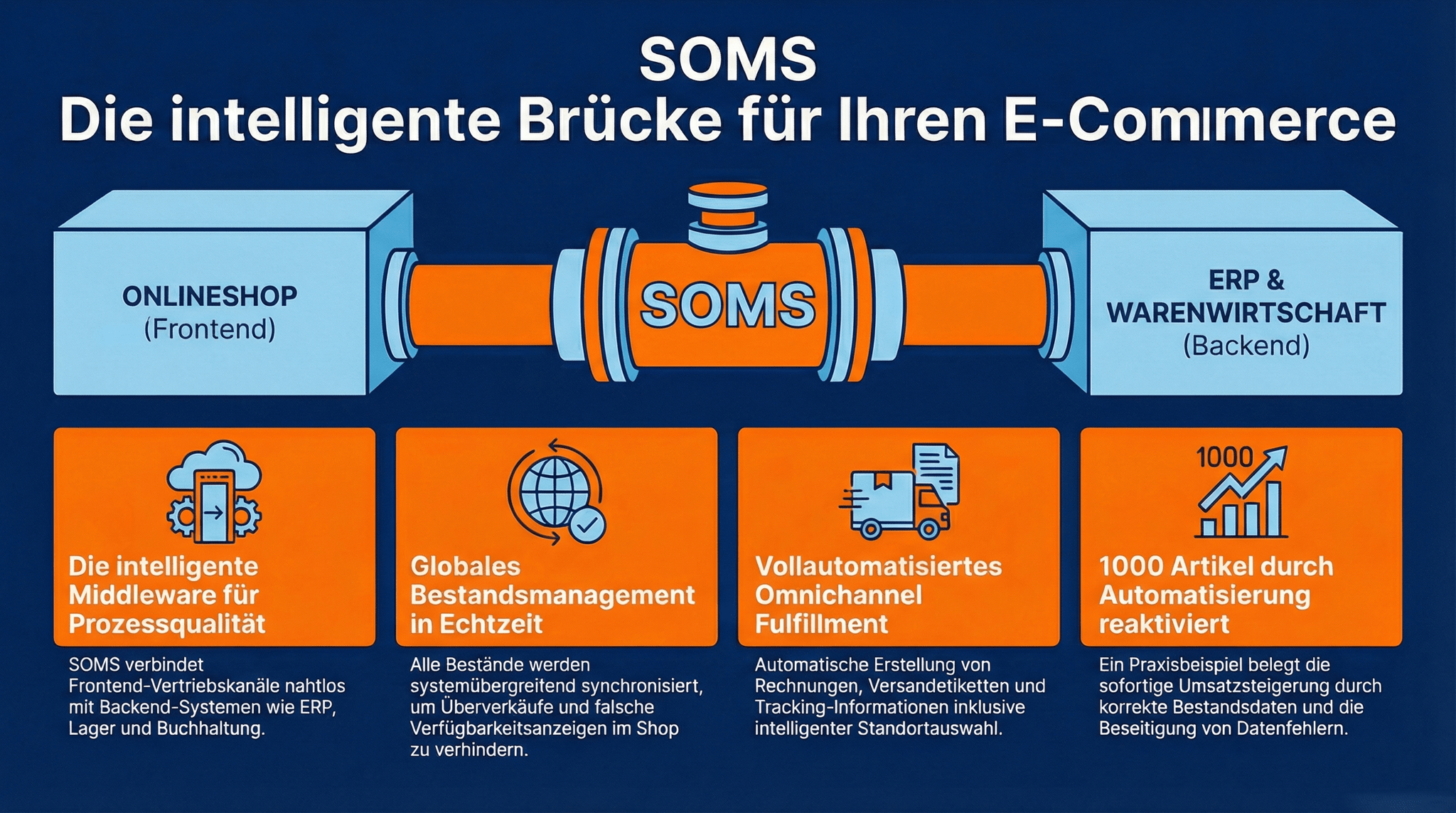 Kurz gesagt: Wer seinen Smartstore-Shop professionell mit ERP und anderen Systemen verbinden will, kommt an SOMS nicht vorbei.