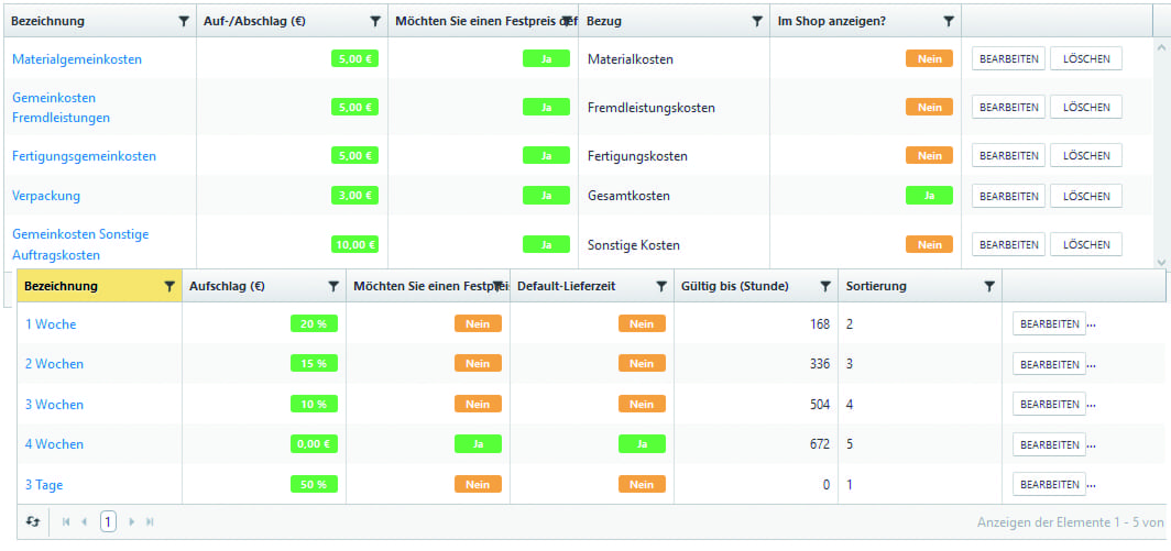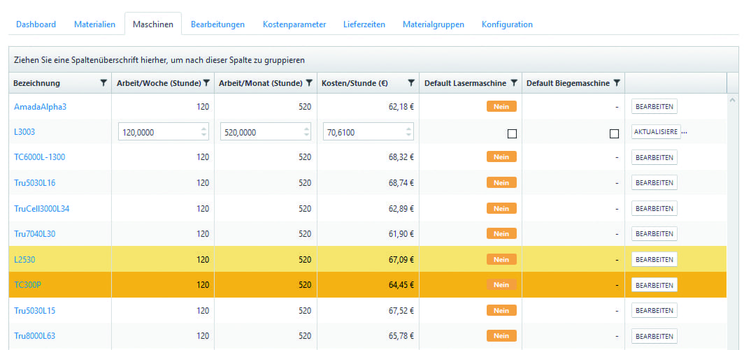 Further parameters relevant to costing are initially set up by the supplier and can be adapted to current conditions at any time if necessary (Fig. 3).